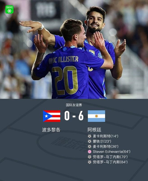 北京时间10月15日国际友谊赛,波多黎各迎战阿根廷。比赛开始后,阿根廷率先打破僵局,麦卡利斯特接尼古拉斯-冈萨雷斯的助攻率先破门。随后梅西送出精准传球,蒙铁尔成功将球送入对方球门,扩大领先优势。临近上半场结束,何塞-洛佩斯助攻麦卡利斯特再下一城,完成个人第二粒进球。进入下半场,波多黎各球员Steven Echevarria不慎自摆乌龙,进一步拉大比分差距。比赛尾声阶段,尼古拉斯-冈萨雷斯再次建功,助攻劳塔罗-马丁内斯推射得手。不久后,梅西再度发威,助劳塔罗-马丁内斯锁定胜局。最终全场比赛结束,波多黎各 0-6 阿根廷。